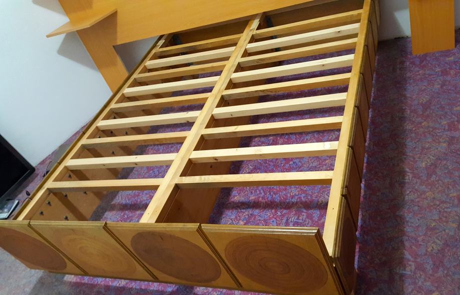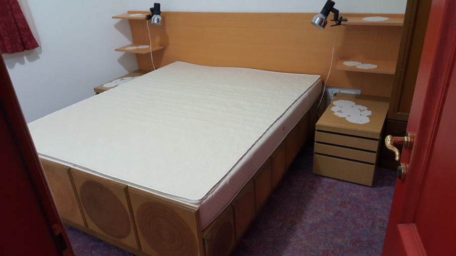 Prodajem bračni krevet 160 x 200 cm, neviđene čvrstine, napravljen od hrastovine i obložen kockama sa intarzijom od furnira.