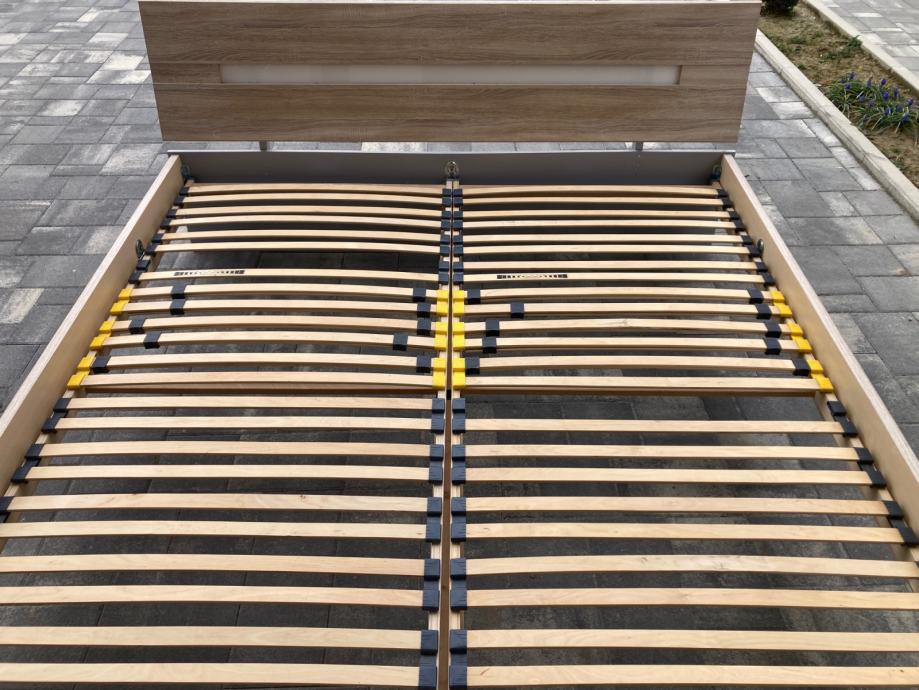 Na podnicama nedostaje po jedna letvica, vidljivo na slici, mogu se premjestiti letvice ispod nogu