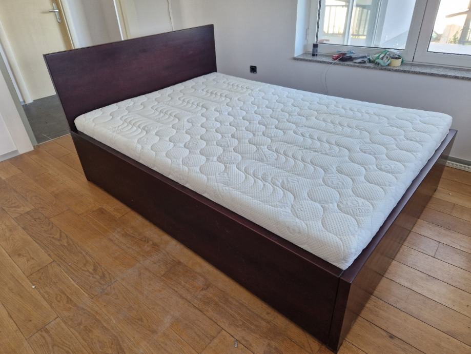 Prodajem Wollbett bračni krevet od masivnog drva tamnocrvene boje.