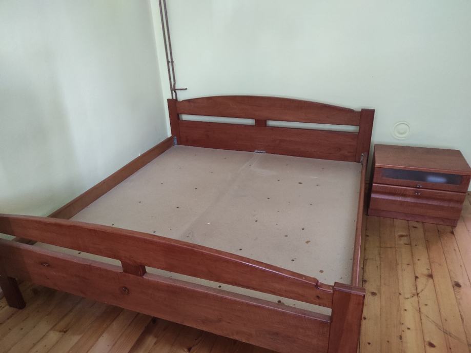 Prodajem bračni krevet 180×190 cm bez madraca, puno drvo rađeno po mjeri i dva noćna ormarića 60 cm cijena 150€