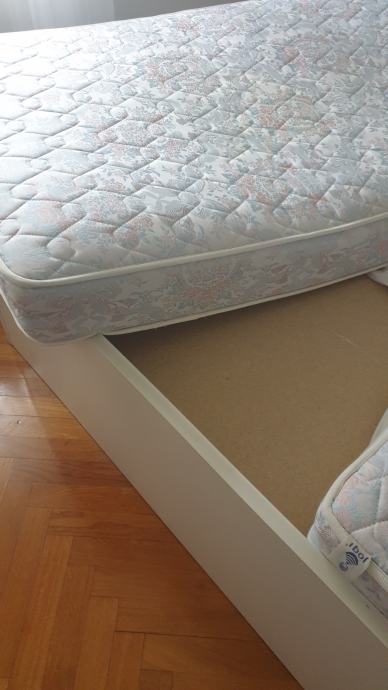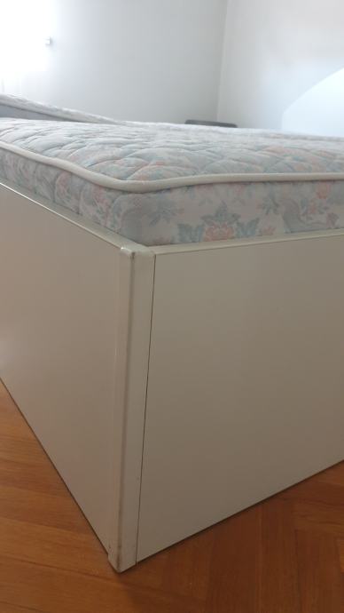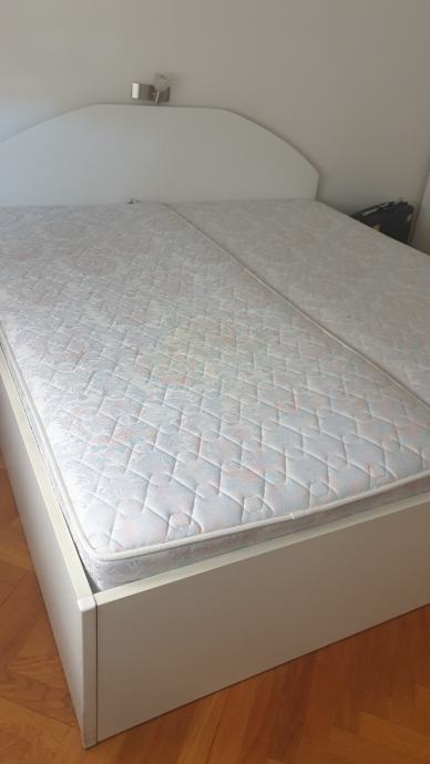 Prodajem bračni krevet dimenzija 180×200 cm, uz njega mogu ići i pripadajući madraci koji se vide na slici (Dva madraca dimenzija 90×200cm).