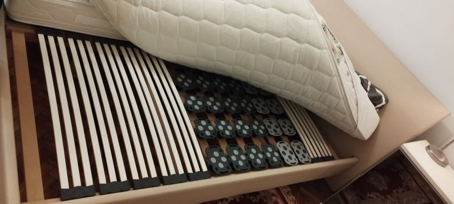 Bračni krevet u odličnom ,kao novi. Ima odličnu podnicu i kvalitetne madrace za zimski i ljetni period.