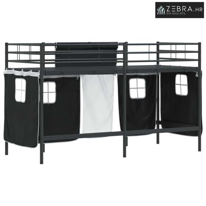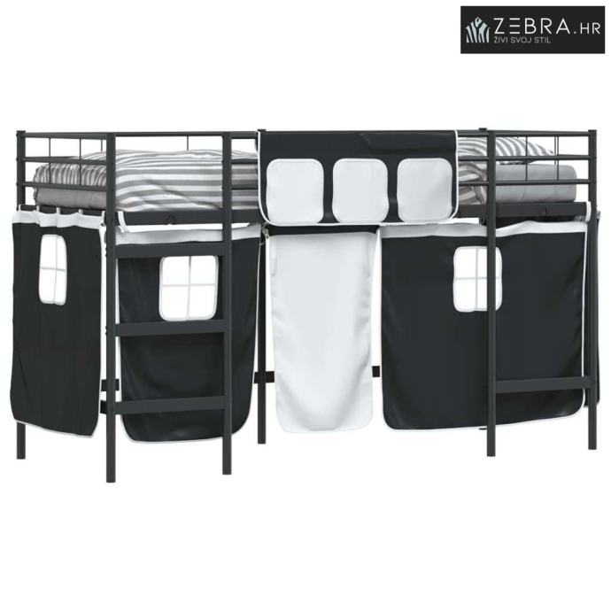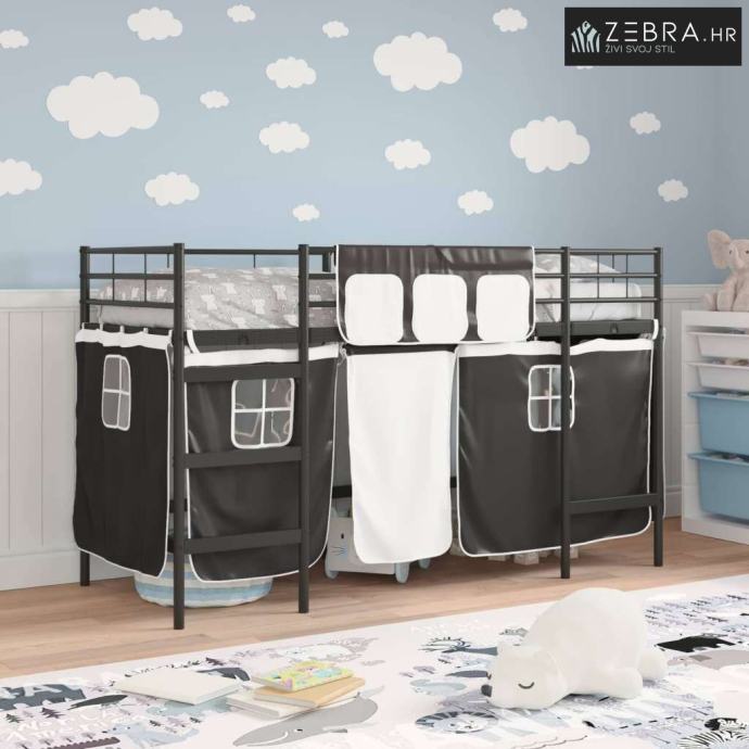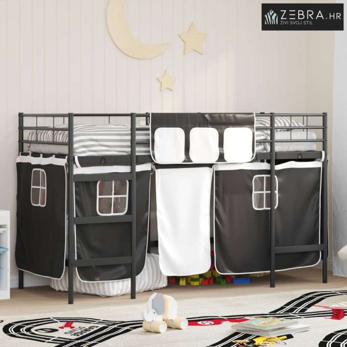 Ovaj krevet na kat za klince s zavjesama zamišljen je da unaprijedi svaku dječju sobu i pretvori ju u moderni, funkcionalni prostor. Podizanjem spavaćeg dijela vašeg mališana iznad tla, stvara se prostor za igru i kreativnost. Metalni okvir i jednostavan dizajn daju mu cool, ali prijateljski izgled, a zavjese donose privatnost i udobnost. Idealan za klince koji vole dremati i istraživati, ovaj krevet na kat donosi avanturu u svaku sobu, a istovremeno olakšava organizaciju prostora.