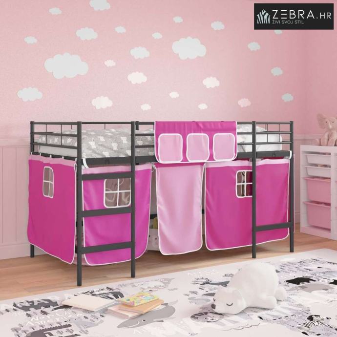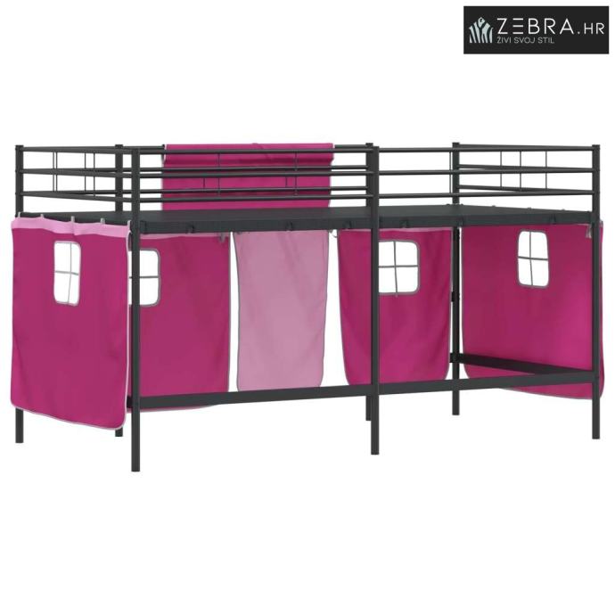 Ovaj krevet na kat za klince s zavjesama zamišljen je da unaprijedi svaku dječju sobu i pretvori ju u moderni, funkcionalni prostor. Podizanjem spavaćeg dijela vašeg mališana iznad tla, stvara se prostor za igru i kreativnost. Metalni okvir i jednostavan dizajn daju mu cool, ali prijateljski izgled, a zavjese donose privatnost i udobnost. Idealan za klince koji vole dremati i istraživati, ovaj krevet na kat donosi avanturu u svaku sobu, a istovremeno olakšava organizaciju prostora.