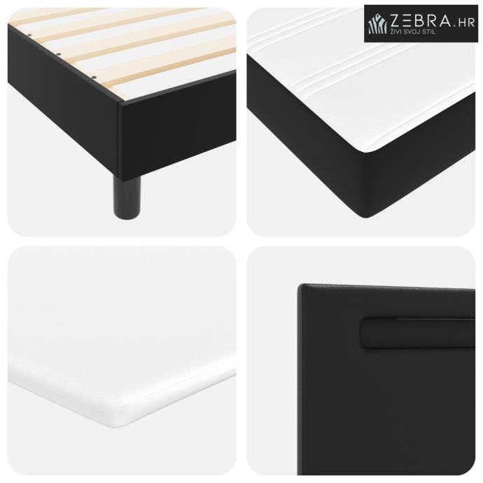 Materijali: Okvir kreveta je napravljen od umjetne kože i konstruiranog drveta, što mu daje vrhunski izgled i solidnu čvrstoću. Umjetna koža dodaje luksuzan osjećaj, dok konstruirano drvo osigurava da okvir traje.