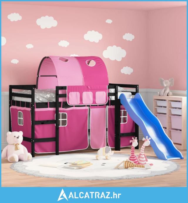 Dječji krevet na kat s tunelom rozi 80x200 cm masivna borovina - NOVO
