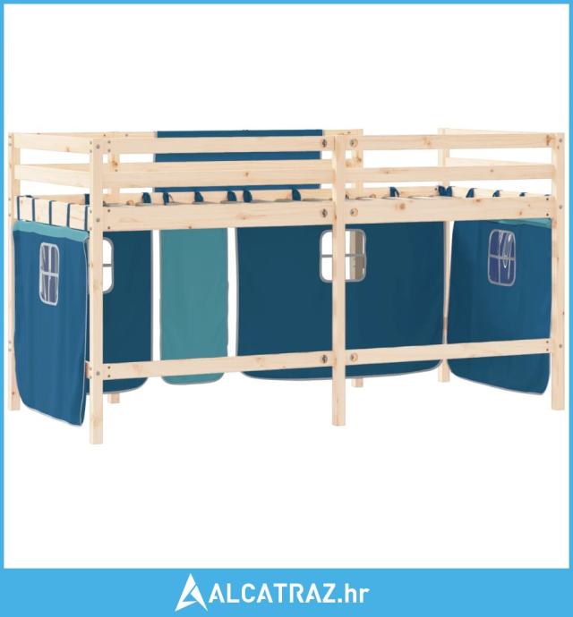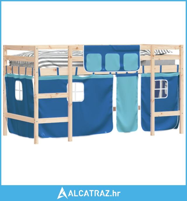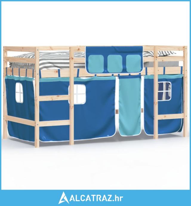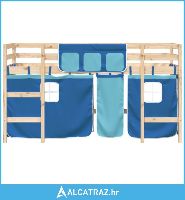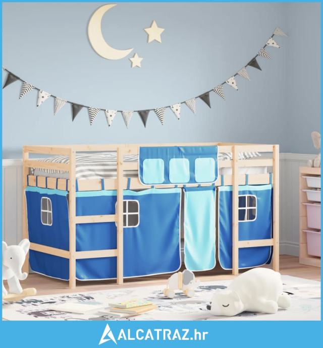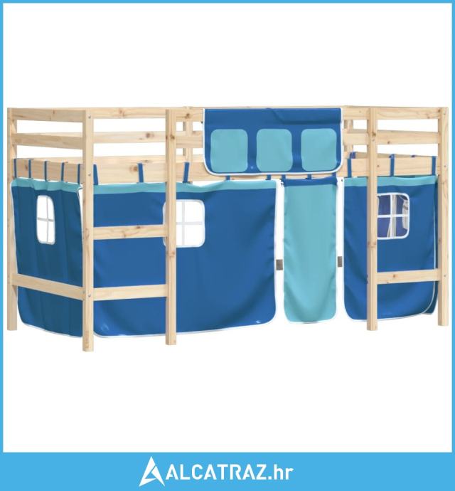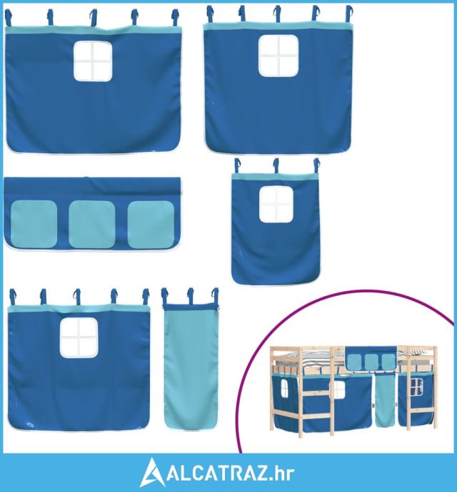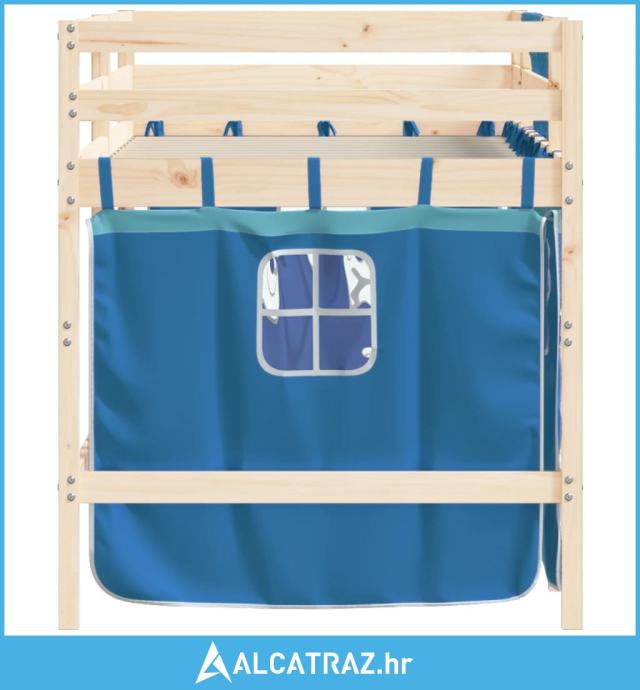 Dječji krevet na kat i zavjese plavi 80 x 200 cm borovina - NOVO