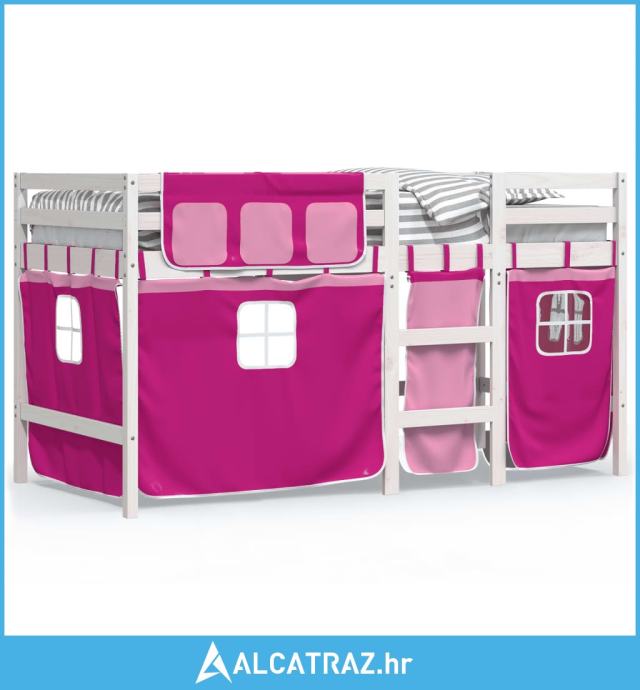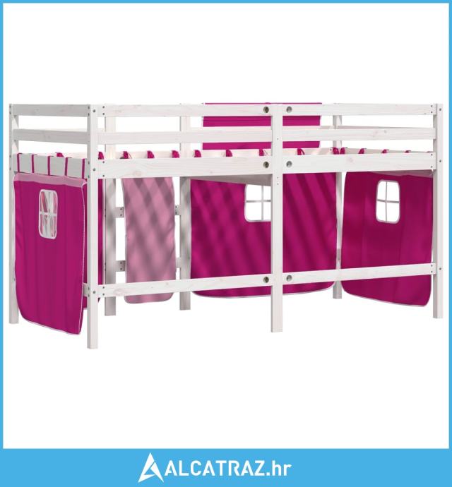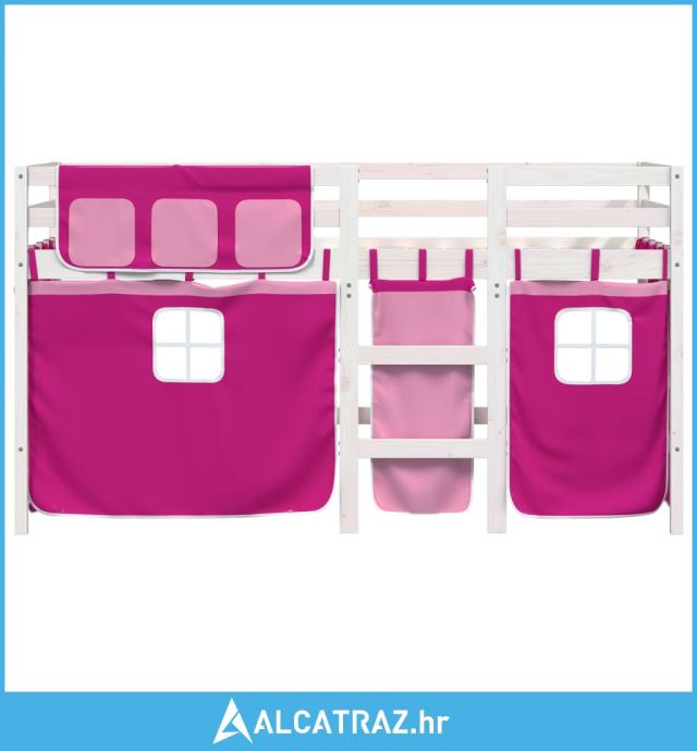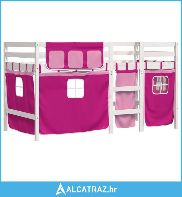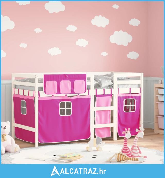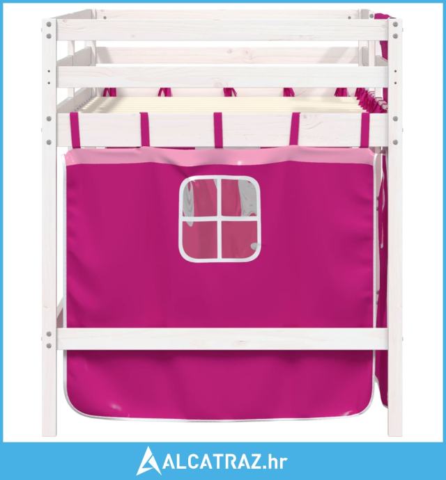 Dječji krevet na kat i zavjese ružičasti 80 x 200 cm borovina - NOVO