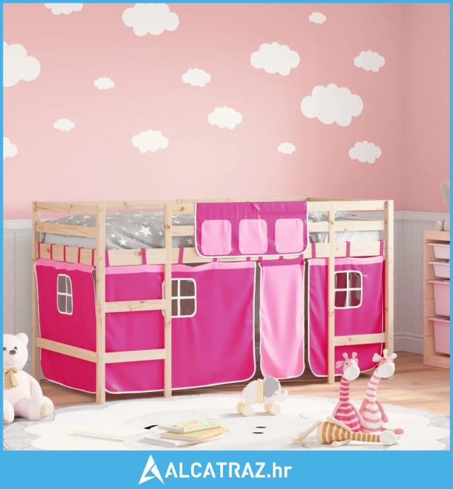 Dječji krevet na kat i zavjese ružičasti 90x190 cm borovina - NOVO