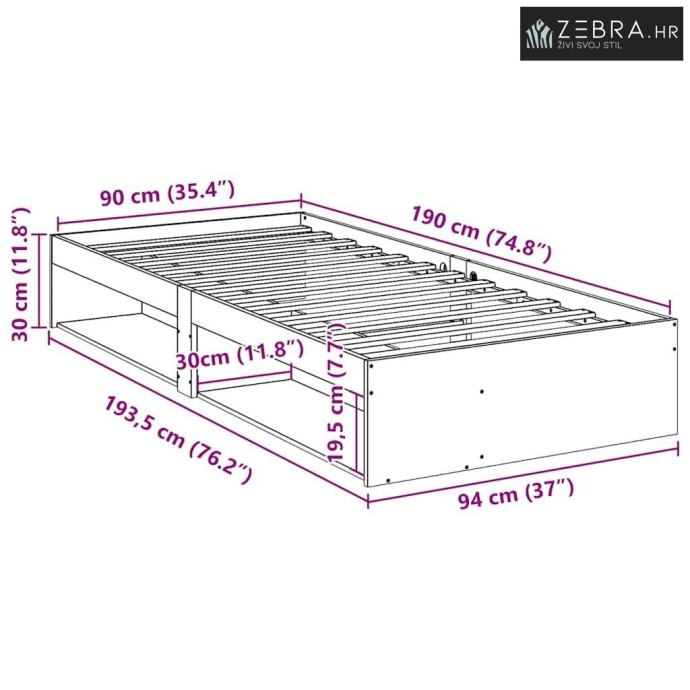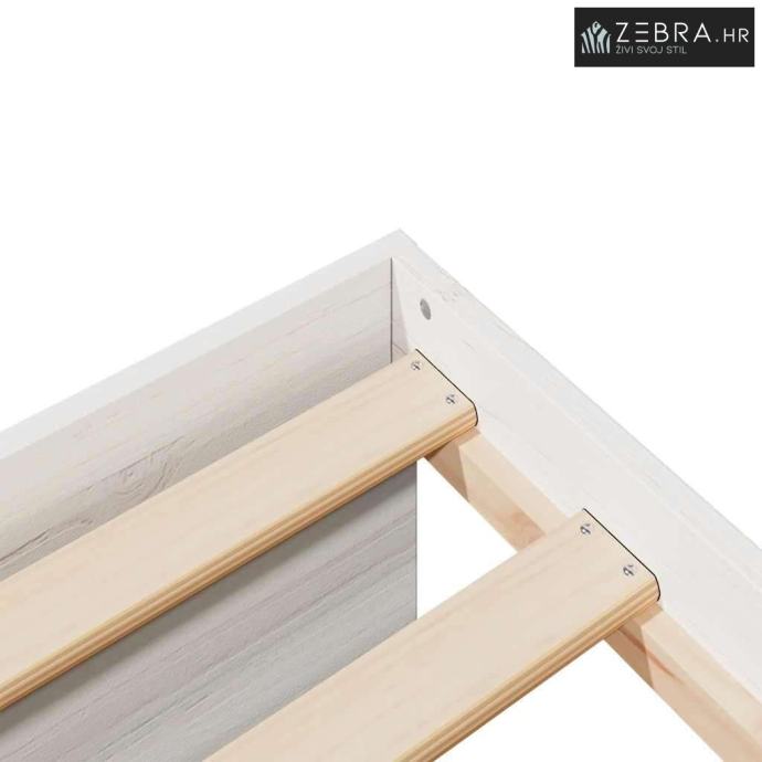 Okvir kreveta uključuje letvičastu podnicu od šperploče koja pruža izvrsnu potporu i prozračnost za vaš madrac, eliminirajući potrebu za kutijastom oprugom.