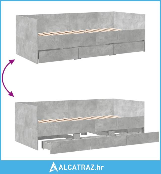 Dnevni krevet s ladicama bez madraca siva boja betona 90x200 cm - NOVO
