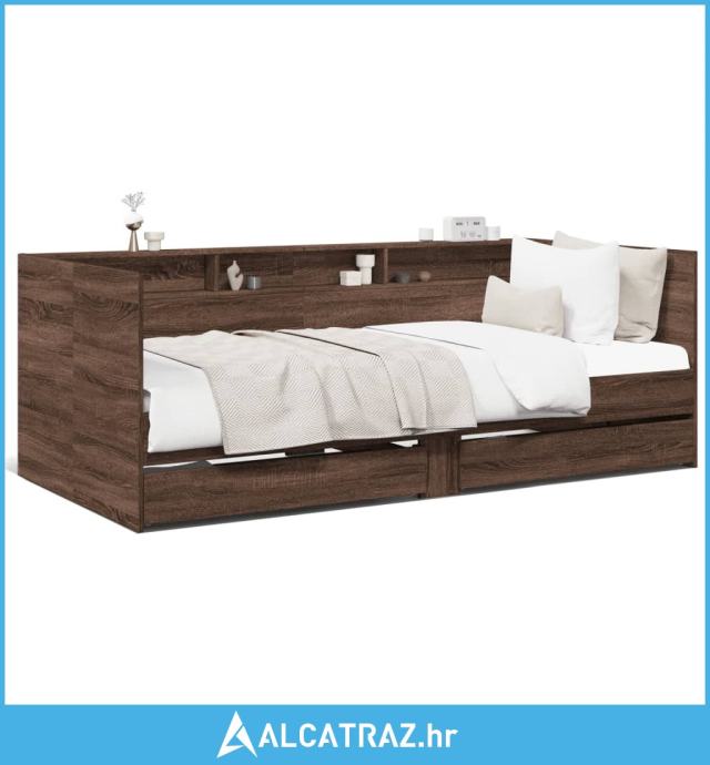 Dnevni krevet s ladicama bez madraca smeđa hrasta 100x200 cm - NOVO