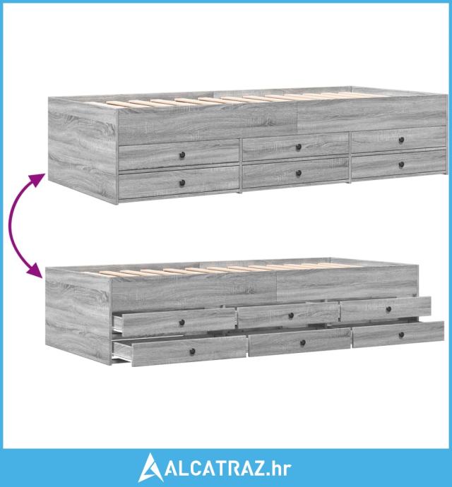 Dnevni krevet s ladicama boja sivog hrasta 75 x 190 cm drveni - NOVO