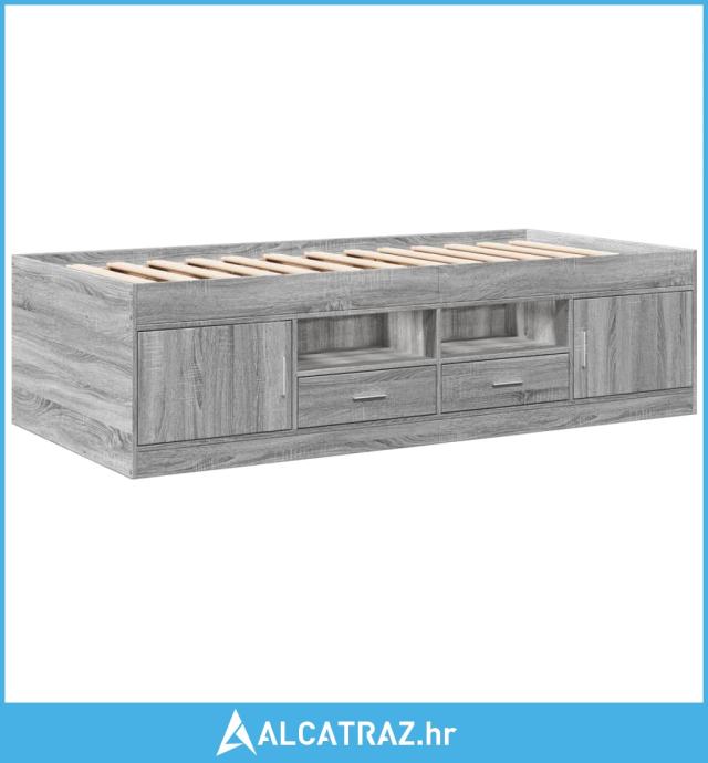 Dnevni krevet s ladicama siva boja hrasta 100 x 200 cm drveni - NOVO