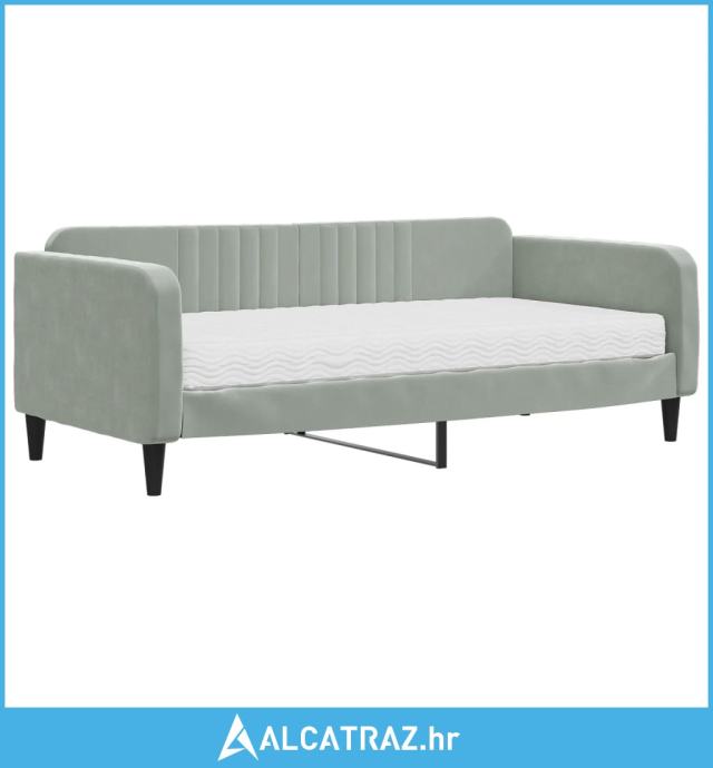 Dnevni krevet s madracem svjetlosivi 90 x 190 cm baršunasti - NOVO