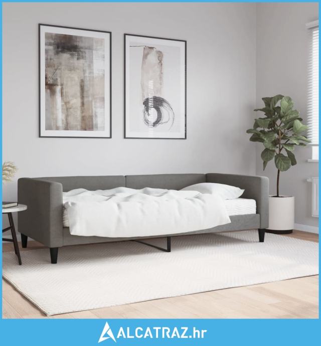 Dnevni krevet s madracem tamnosivi 90 x 200 cm od tkanine - NOVO