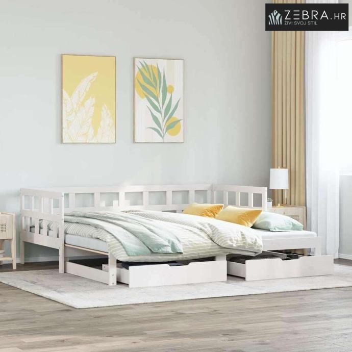 Dnevni krevet na razvlačenje s ladicama bez madraca 80x200 cm - Bijela