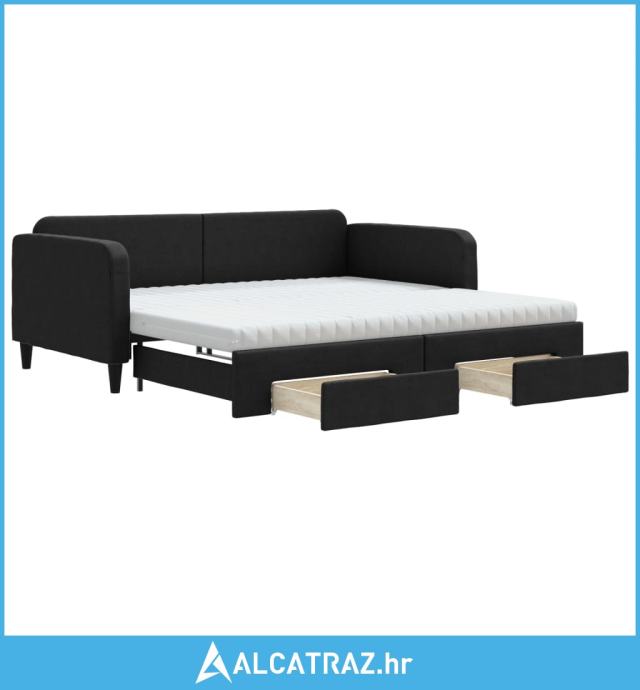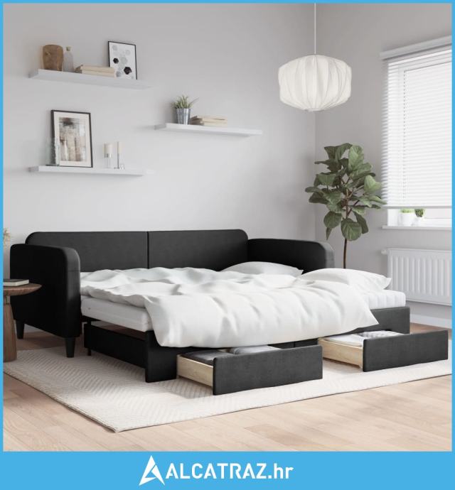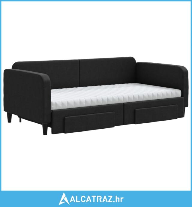 Dnevni krevet na razvlačenje s ladicama crni 100x200 cm tkanina - NOVO