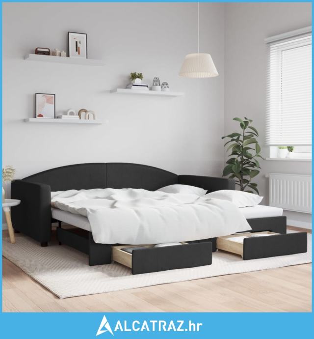Dnevni krevet na razvlačenje s ladicama crni 100x200 cm tkanina - NOVO
