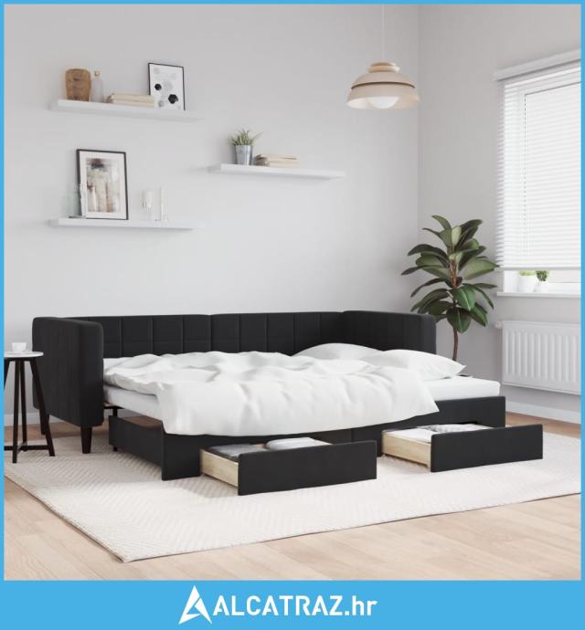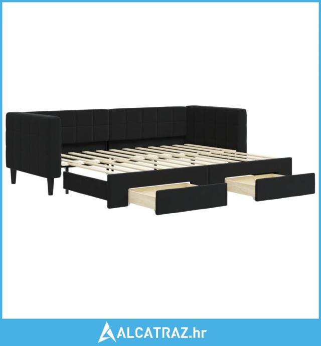 Dnevni krevet na razvlačenje s ladicama crni 80 x 200 cm baršun - NOVO