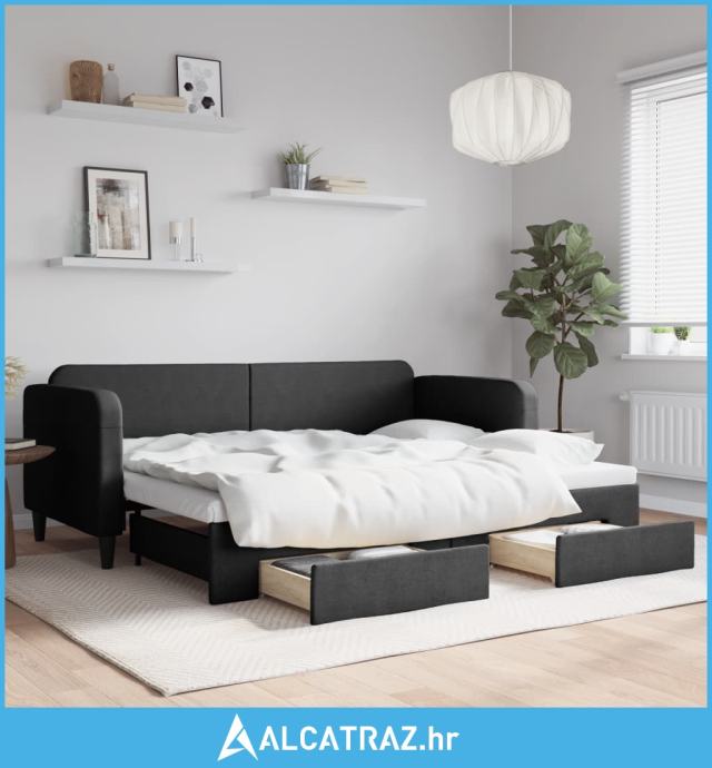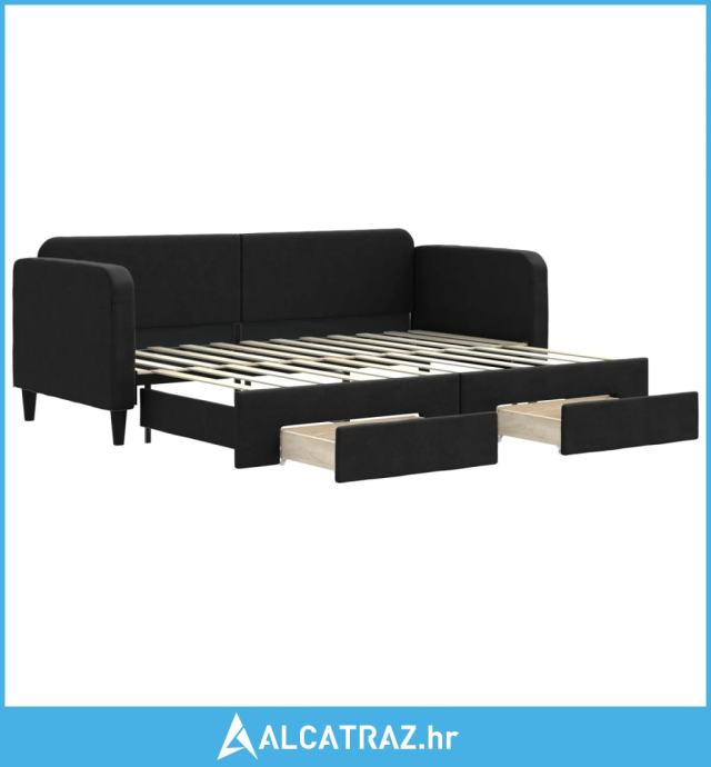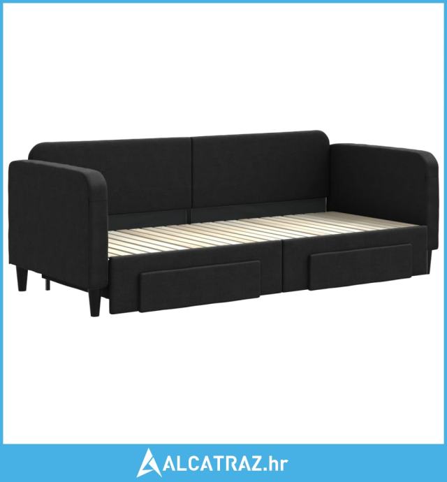 Dnevni krevet na razvlačenje s ladicama crni 80x200 cm tkanina - NOVO