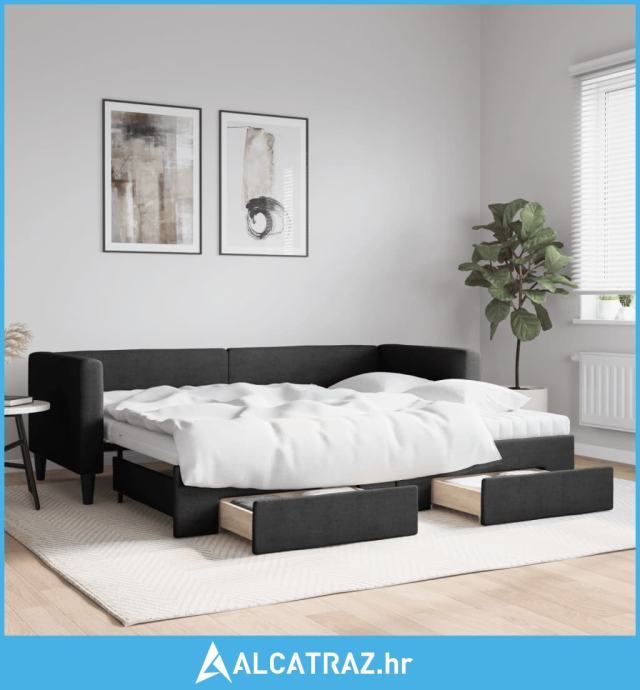 Dnevni krevet na razvlačenje s ladicama crni 80x200 cm tkanina - NOVO