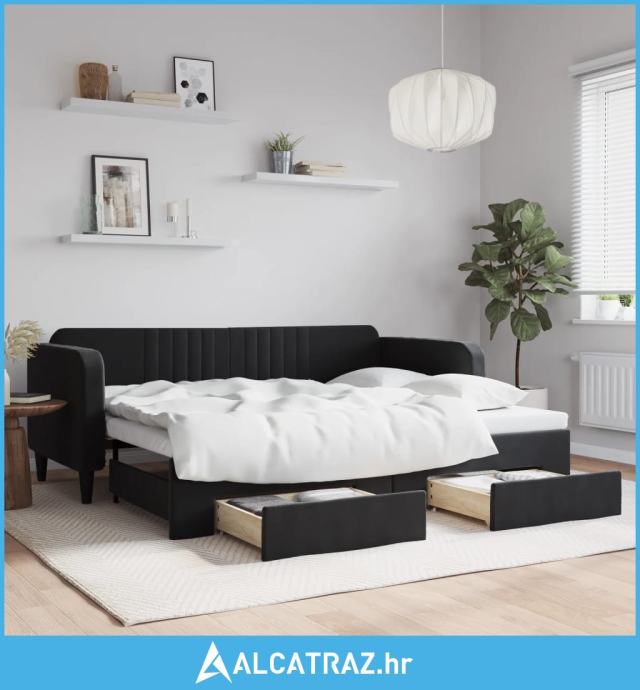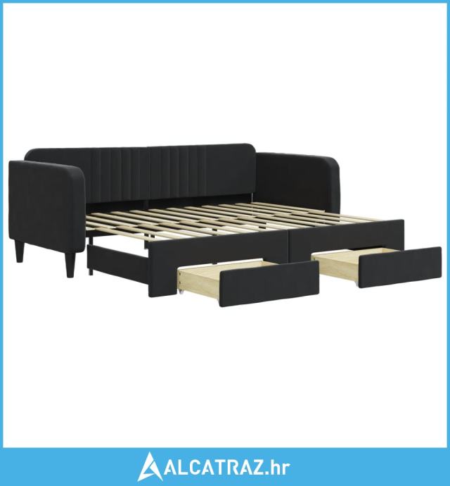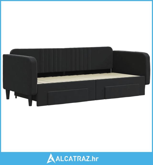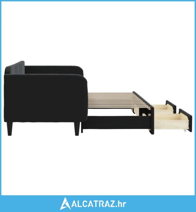 Dnevni krevet na razvlačenje s ladicama crni 90 x 200 cm baršun - NOVO