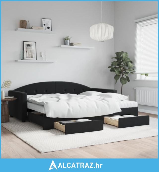 Dnevni krevet na razvlačenje s ladicama crni 90 x 200 cm baršun - NOVO