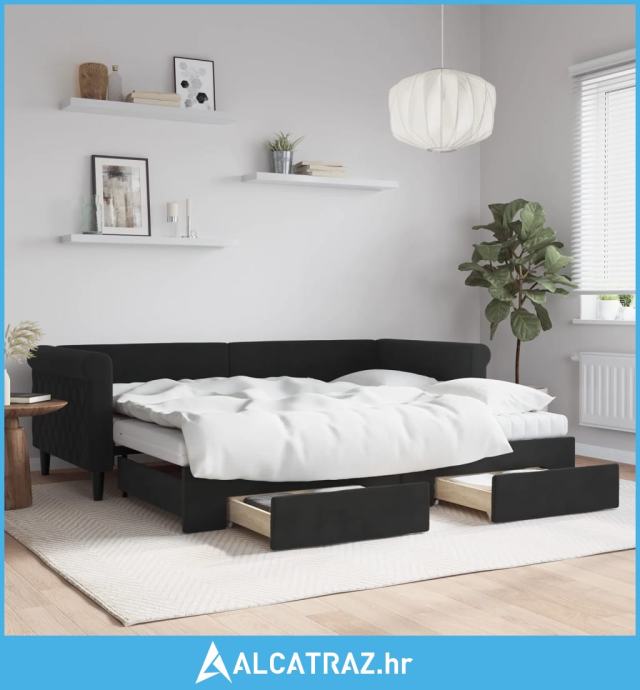 Dnevni krevet na razvlačenje s ladicama crni 90 x 200 cm baršun - NOVO