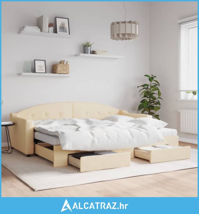 Dnevni krevet na razvlačenje s ladicama krem 80x200 cm tkanina - NOVO