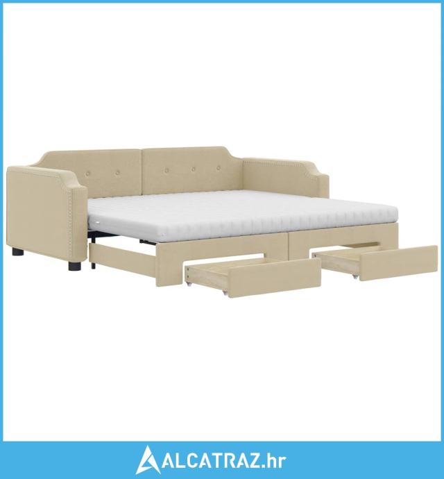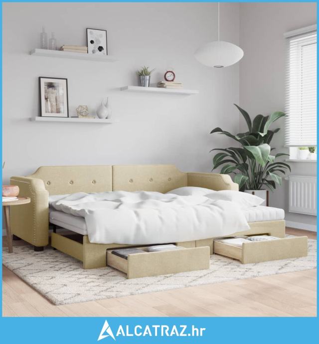 Dnevni krevet na razvlačenje s ladicama krem 90x200 cm tkanina - NOVO
