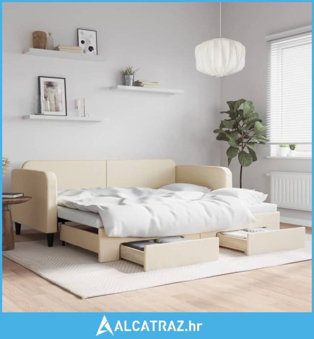 Dnevni krevet na razvlačenje s ladicama krem 90x200 cm tkanina - NOVO