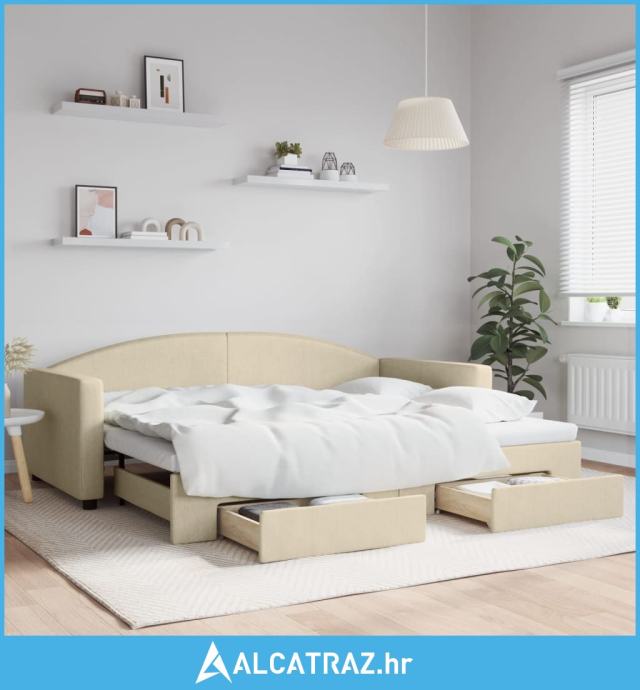 Dnevni krevet na razvlačenje s ladicama krem 90x200 cm tkanina - NOVO
