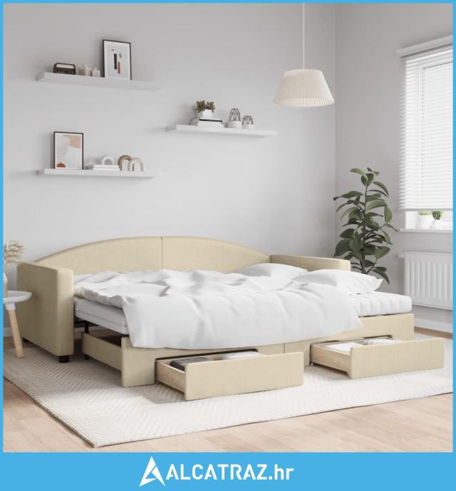 Dnevni krevet na razvlačenje s ladicama krem 90x200 cm tkanina - NOVO
