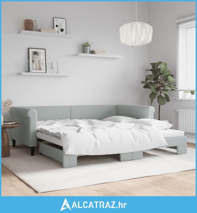 Dnevni krevet na razvlačenje svjetlosivi 100x200 cm baršunasti - NOVO