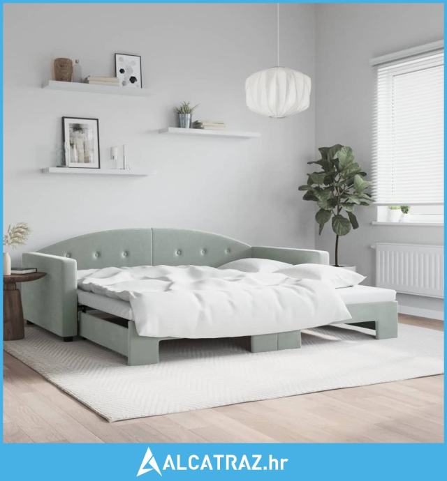 Dnevni krevet na razvlačenje svjetlosivi 100x200 cm baršunasti - NOVO