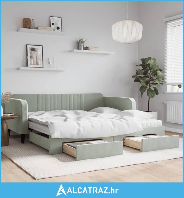 Dnevni krevet na razvlačenje svjetlosivi 100x200 cm baršunasti - NOVO
