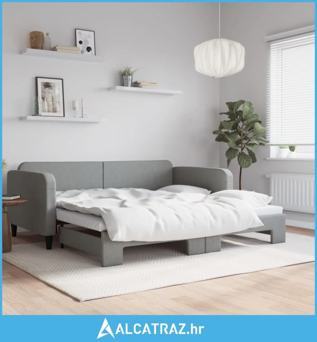 Dnevni krevet na razvlačenje svjetlosivi 100x200 cm od tkanine - NOVO