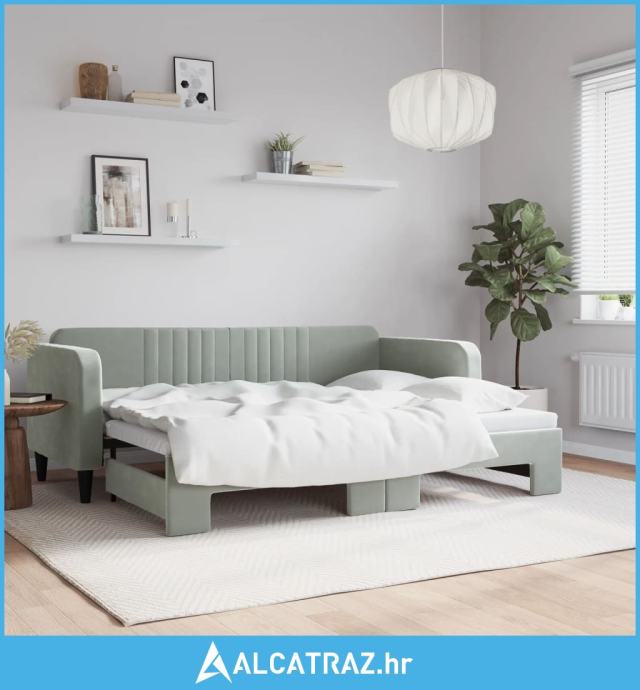Dnevni krevet na razvlačenje svjetlosivi 80 x 200 cm baršunasti - NOVO