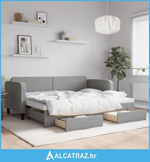 Dnevni krevet na razvlačenje svjetlosivi 80 x 200 cm od tkanine - NOVO