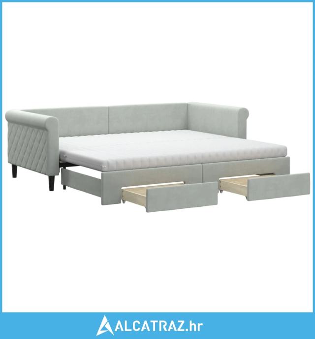Dnevni krevet na razvlačenje svjetlosivi 90 x 200 cm baršunasti - NOVO