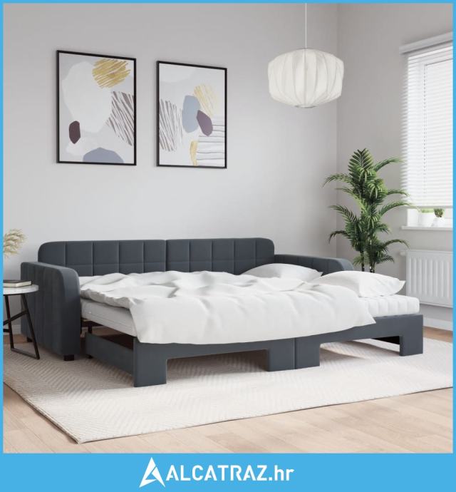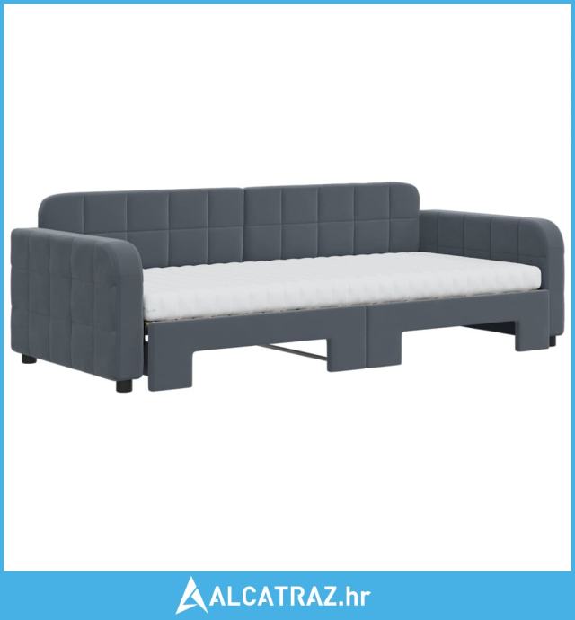 Dnevni krevet na razvlačenje tamnosivi 90 x 200 cm baršunasti - NOVO