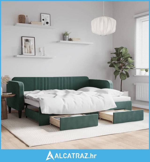 Dnevni krevet na razvlačenje tamnozeleni 80 x 200 cm baršunasti - NOVO