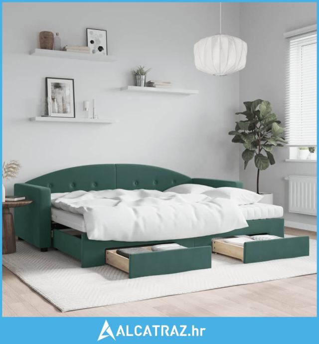 Dnevni krevet na razvlačenje tamnozeleni 80 x 200 cm baršunasti - NOVO