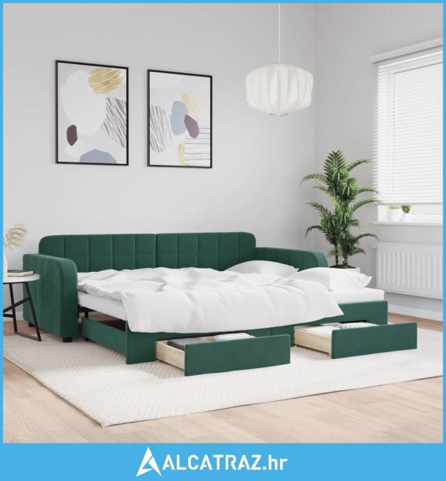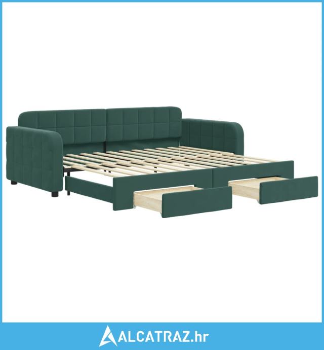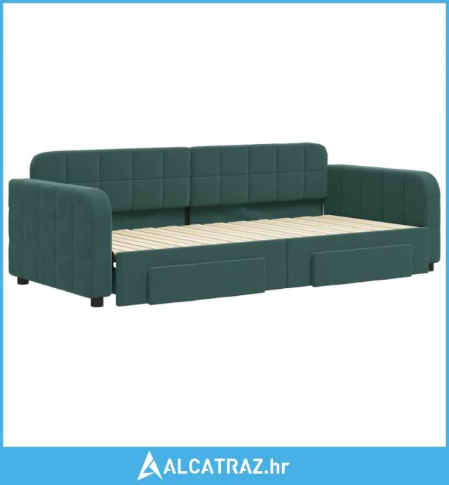 Dnevni krevet na razvlačenje tamnozeleni 90 x 200 cm baršunasti - NOVO