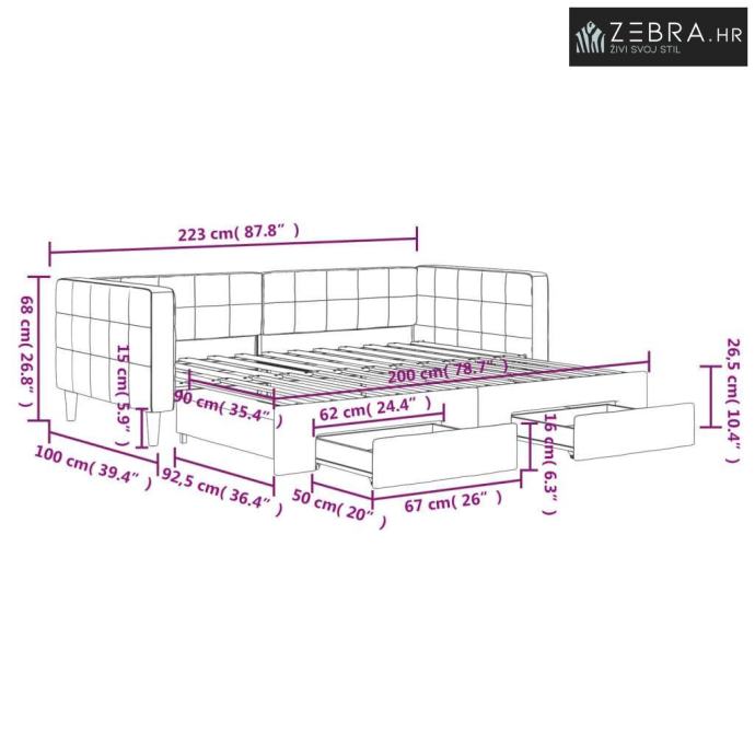 Dimenzije (izvučenog): 223 x 192,5 x 68 cm (D x Š x V)