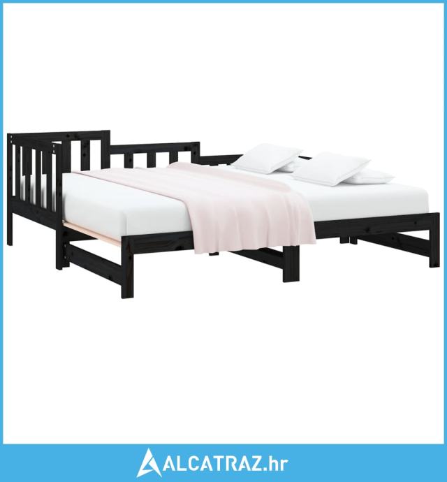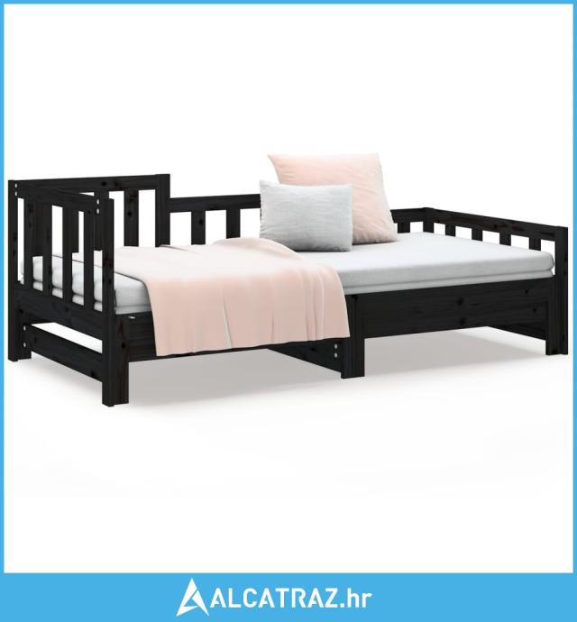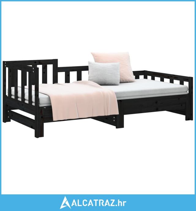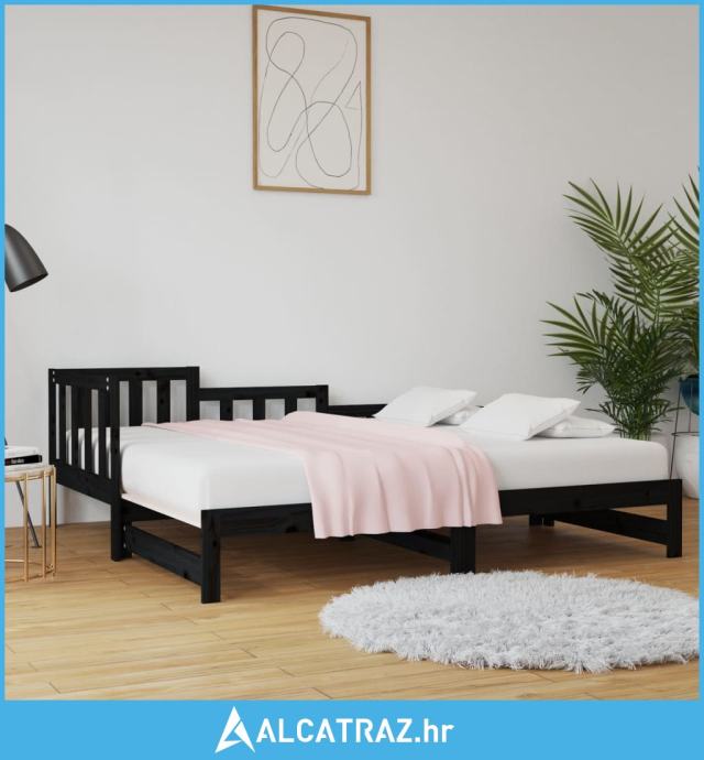 Dnevni ležaj na izvlačenje crni 2x (80x200) cm masivna borovina - NOVO