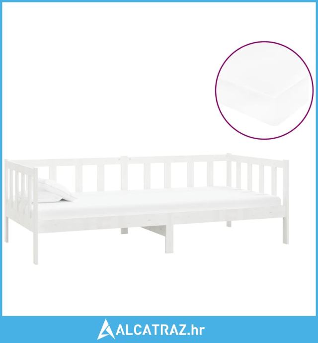 Dnevni ležaj s madracem 90 x 200 cm bijeli od masivne borovine - NOVO