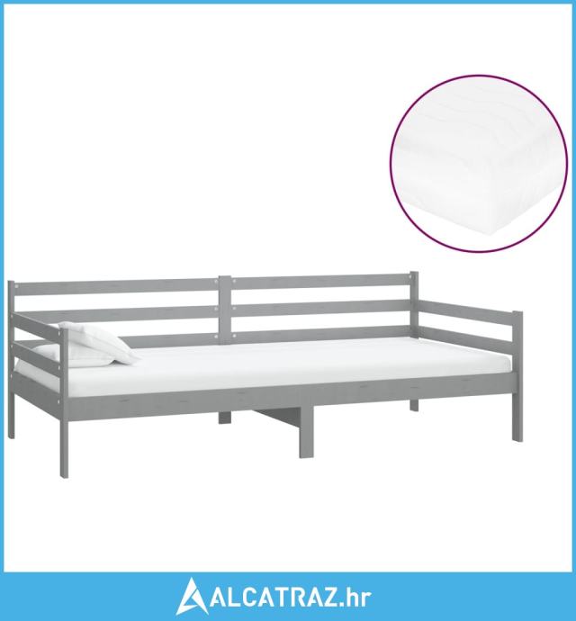 Dnevni ležaj s madracem 90 x 200 cm sivi od masivne borovine - NOVO