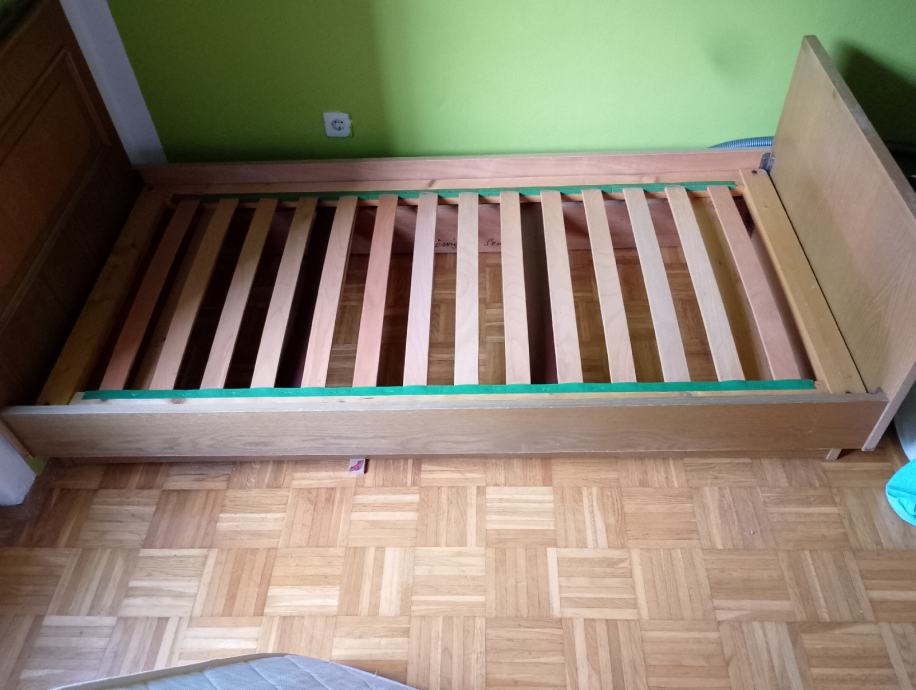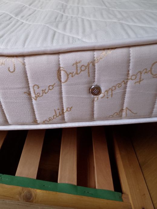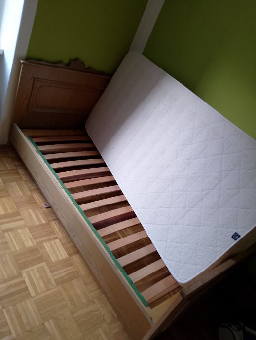Nudim drveni krevet u kompletu: okvir, podnica i madrac! Vrlo stabilan i očuvan, madrac kao nov.
